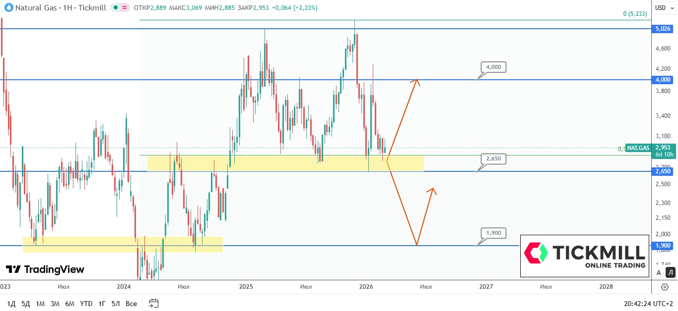 Техническая картина и сценарии: Котировки NAT.GAS продолжают тестировать область поддержки 2.65–2.85 (50% уровень коррекции).